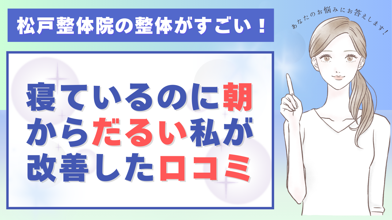 今日は、「朝からだるい」が何年も続いていた私が、松戸整体院で初めて朝の質”が変わった体験を、口コミとして正直に書いてみたいと思います。