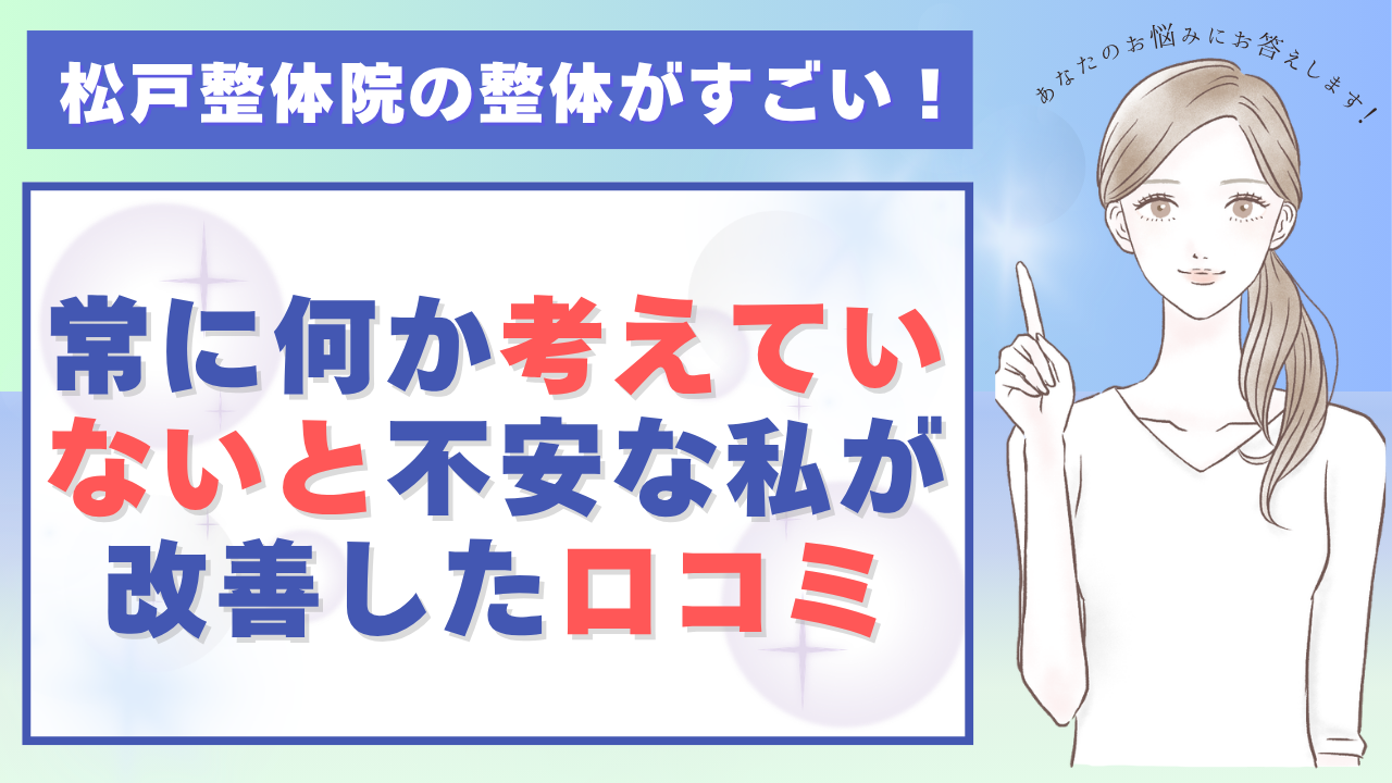 今日は、「常に何か考えていないと不安」という状態が続いていた私が、松戸整体院で思考と神経の関係を知った体験を口コミとして正直に書いてみたいと思います。